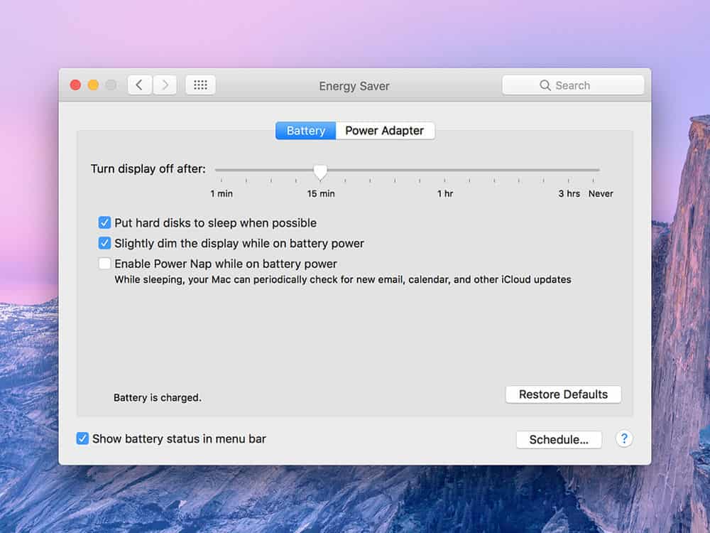 خيارات الطاقة في نظام تشغيل ماكينتوش