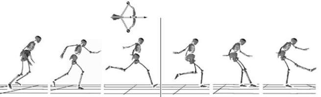 والآن إلى مرحلة التحضير الأمامي أثناء الركل. في هذه المرحلة تتقلص العضلات ليتم تدوير الجذع، وإرخاء الكتف في الجانب المعاكس لجهة الركل باتجاه الساق التي تركل. بالإضافة إلى ذلك، يتم تحريك الساق الراكلة وفق تسلسل محدد: يتم ثني الورك أولاً، يتبعه تمطط سريع للركبة، مما يؤدي إلى تسارع اقتراب القدم من ملامسة الكرة.