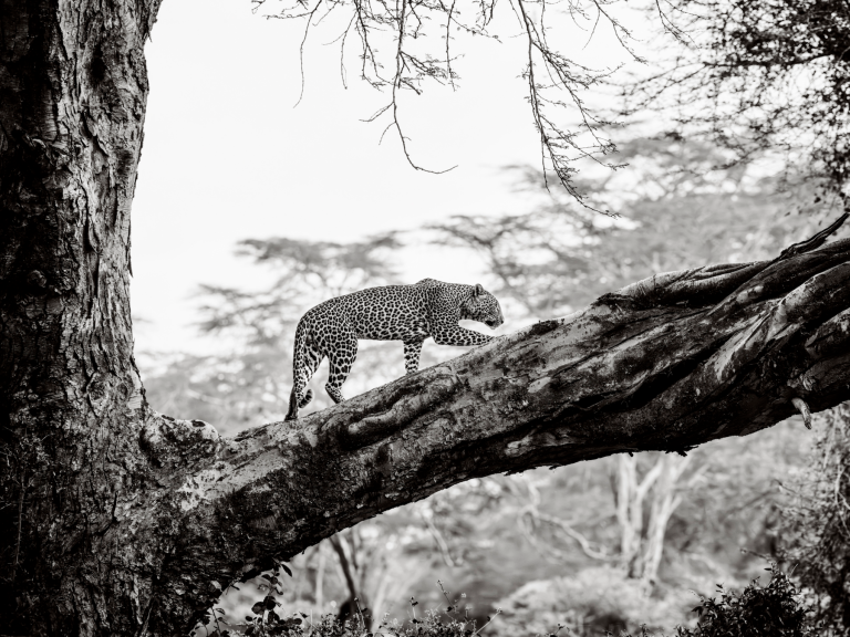 تمثل مواجهة النمر لحظة نادرة تخطف الأنفاس. التُقطت صورة هذا السنوريّ المهيب في بحيرة ناكورو في كينيا، في أعماق غابة من أشجار الحمى. في البداية، كان واقفاً على أحد الأغصان، ثم أخذ يتجول برشاقة على فرع الشجرة الضخم، لقد كانت تجربة لا تُفوّت بالنسبة إلى المصور.