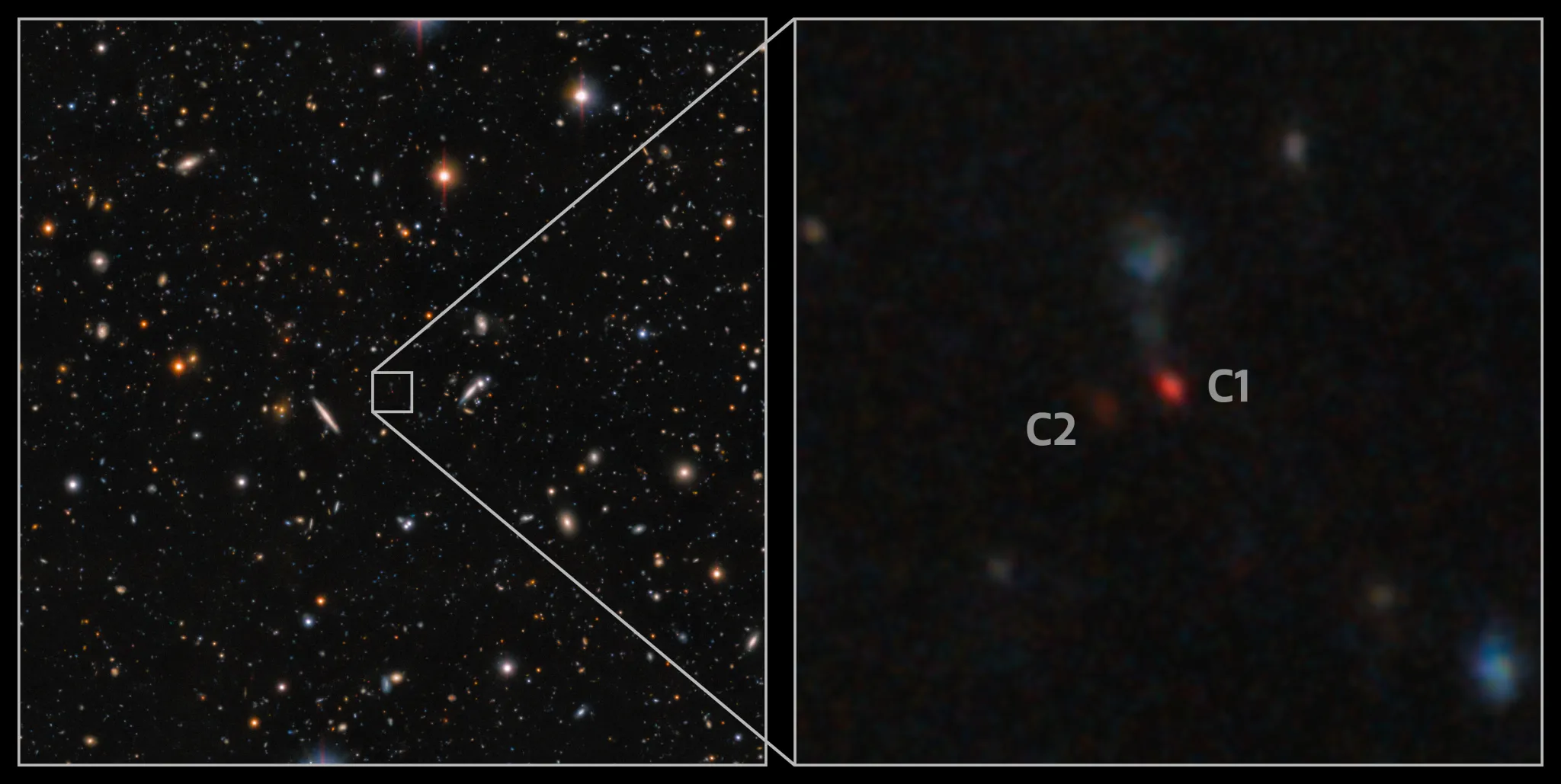 على الرغم من اتساع الفضاء، لا تزال المجرات تتصادم ويندمج بعضها بعضاً وتتداخل معاً أيضاً. اكتشف فريق دولي من علماء الفلك مؤخراً أبعد زوج من النجوم الزائفة يُكتشف على الإطلاق. يندمج هذان المركزان المجريان معاً، ويتحرك كل من الغبار والغاز فيهما تجاه ثقب أسود مركزي فائق. مثل النجوم الزائفة جميعها، يبعث الزوج كميات هائلة من الضوء، لكن هذا الثنائي الديناميكي يعود إلى الفجر الكوني. وُصِفت النتائج في دراسة نشرت في مجلة رسائل مجلة الفيزياء الفلكية (The Astrophysical Journal Letters)، وهي تُسلّط الضوء على هذه الأجسام الكونية الغامضة.