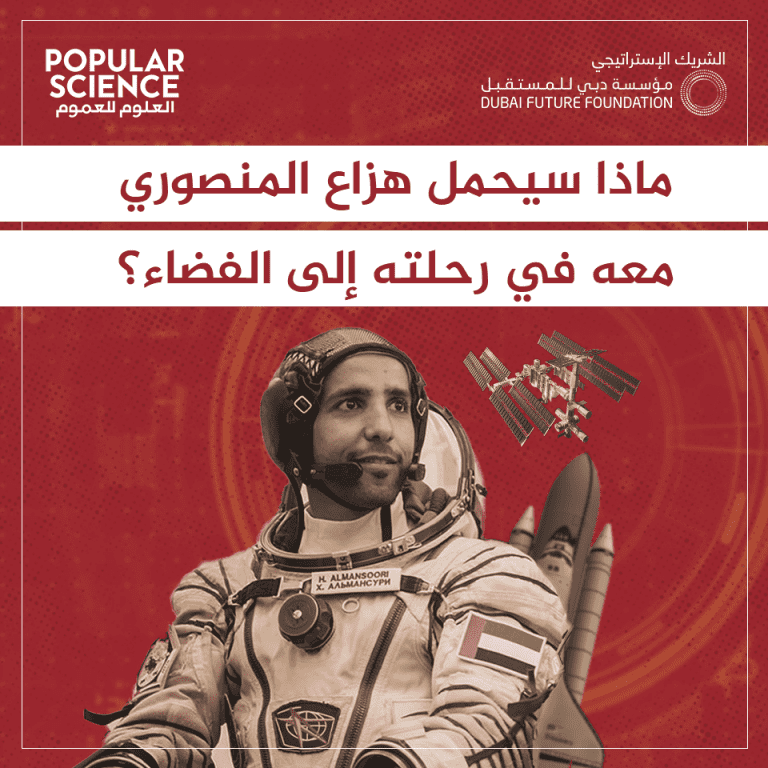 انطلق «هزاع المنصوري» إلى محطة الفضاء الدولية اليوم، 25 سبتمبر/ أيلول، ليصبح أول رائد فضاء إماراتي وعربي يذهب في رحلة إلى محطة الفضاء الدولية. ربما تتساءل عن تفاصيل الرحلة وموعد الانطلاق، وأيضاً، تتساءل عن: تُرى ما الذي سيكون برفقة «هزاع المنصوري» في هذه الرحلة؟ إليك الإجابة.