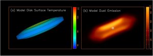 نموذج حاسوبي للقرص النجمي الأولي، وخريطة لتوزع الحرارة داخل HH212