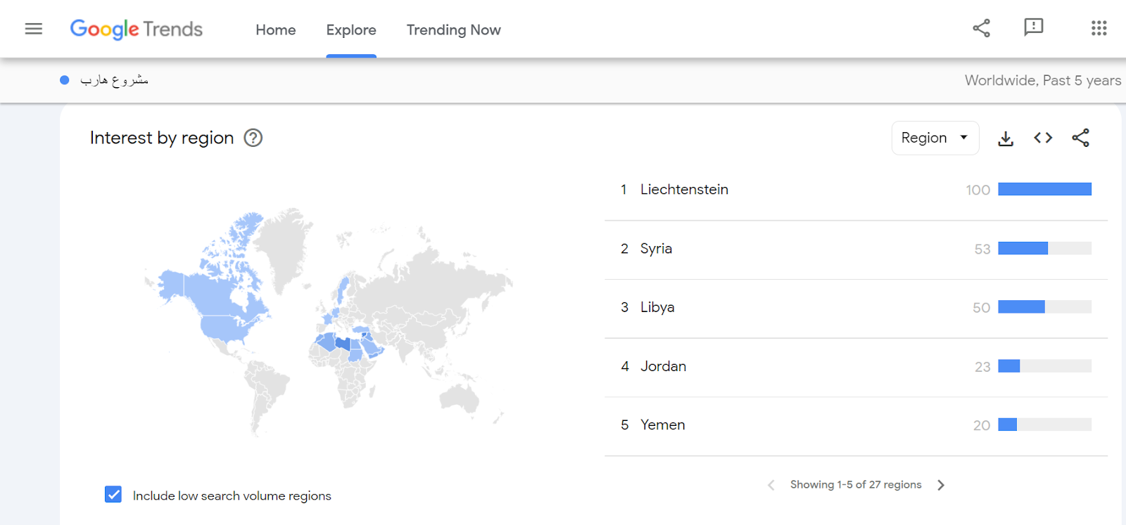 ويمكن ترتيب الدول العربية التي بحثت عن "مشروع هارب" خلال السنوات الخمس الماضية كما يلي: