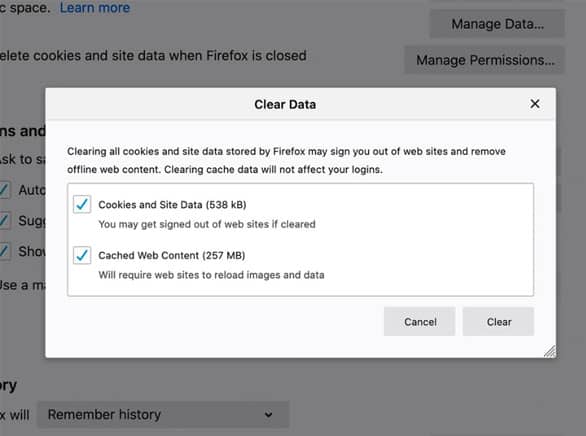 2. مسح ذاكرة التخزين المؤقت وملفات تعريف الارتباط (الكوكيز)