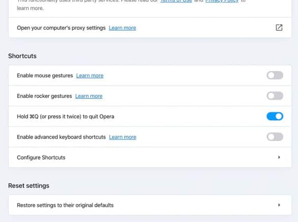 كما تتضمن متصفحات كروم وفايرفوكس وإيدج وأوبرا ميزاتٍ مفيدة تتيح لك إعادة تعيين المتصفّح إلى حالته الافتراضية، مما يوفر عليك عناء إلغاء تثبيت البرنامج بأكمله وإعادة تثبيته مجدداً. في كروم وإيدج وأوبرا، ابحث عن خيار استعادة الإعدادات إلى الإعدادات الافتراضية في أسفل قائمة الإعدادات المتقدمة. في فايرفوكس، اكتب في شريط العنوان «about: support» في علامة تبويب جديدة، ثم اضغط على زر الإدخال كي تصل إلى صفحة الإعدادات، ثم انقر فوق «Refresh Firefox». لن تؤثر عمليات إعادة الضبط هذه على سجل التصفح والإشارات.
