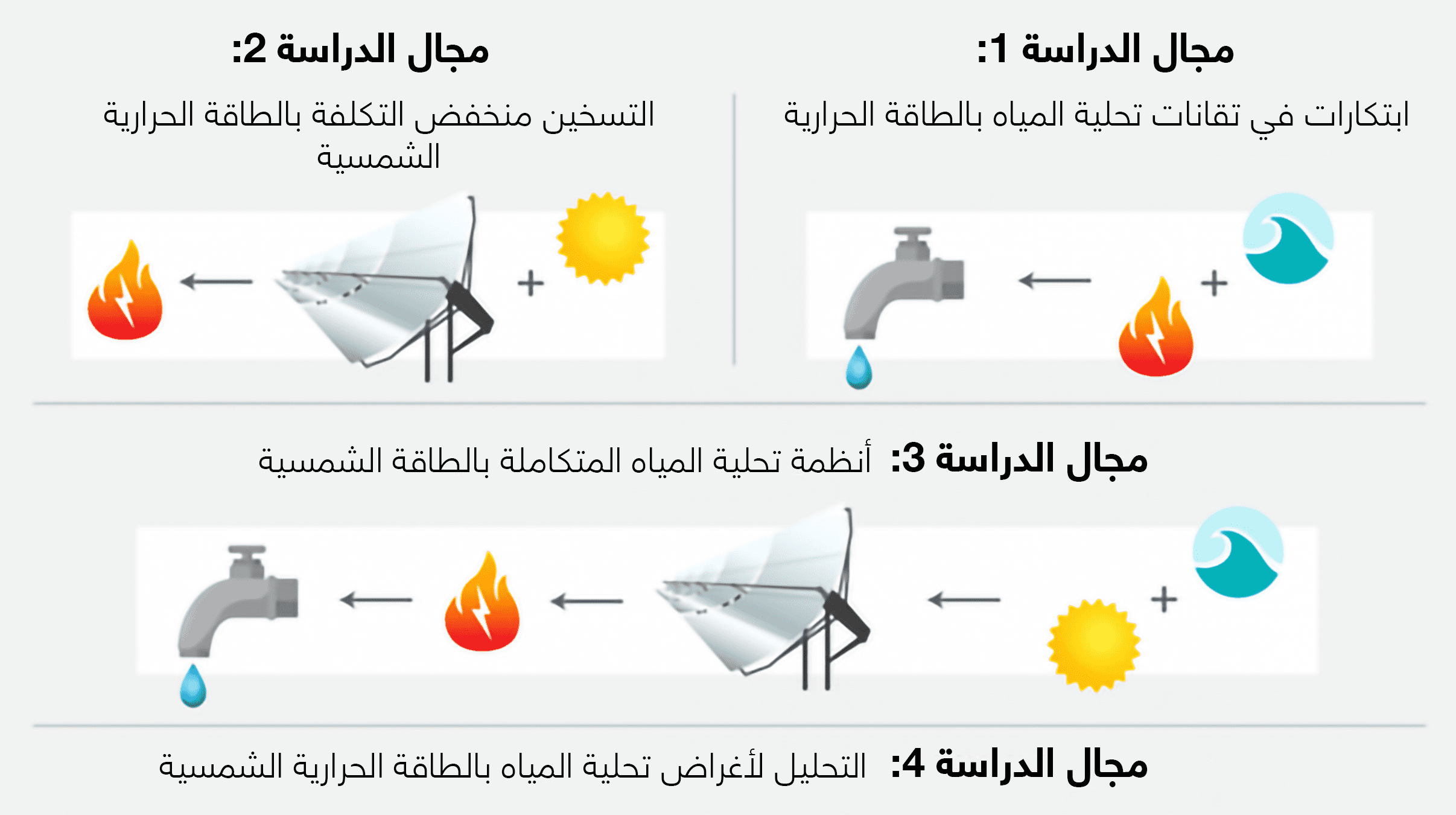 تركز المبادرة على الطاقة الحرارية الشمسية، التي تستخدم ضوء الشمس لتوليد الحرارة، والتي يمكن استخدامها لغلي الماء. تتمتع محطات التحلية الحرارية الشمسية بالعديد من المزايا: فهي لا تحتاج إلى الوقود، ولا تلوث الهواء، ولا يلزم توصيلها بشبكة الطاقة الكهربائية.