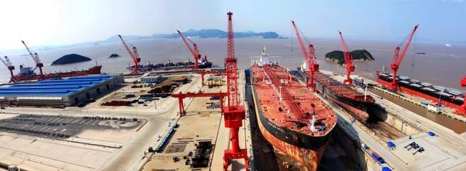 على الرغم من أن الصين تعتبر أول دولة على مستوى العالم في بناء السفن من ناحية الوزن، فإنها تتقدم أيضاً في مجال القيمة متحدية اليابان وكوريا الجنوبية، بما في ذلك بناء ما يسمى بالسفن العملاقة، والتي يزداد تطورها باطراد، مثل الناقلات ذات الحاويات، وناقلات الغاز المسيل، وسفن الهندسة البحرية.