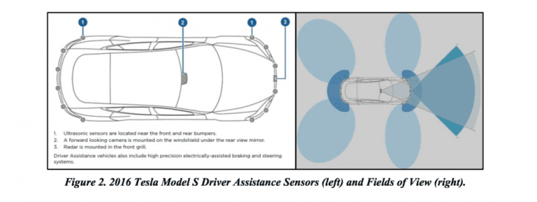 يستخدم نظام مكابح الطوارئ الآلي في "تسلا" الكاميرات والرادار لكشف الأجسام القريبة التي يمكن أن تشكل خطراً، وهي مصممة على غرار الأنظمة الشبيهة الأخرى لتفادي وقوع الاصطدام من الخلف. وقد وجدت الحكومة أثناء قيامها باختبار أثناء التحقيق بأن نظام تسلا يعد "حديثا جدا"، ولكن "نظام المكابح لحالات الاصطدام في الطرق المتقاطعة كالتي وقعت في حادثة فلوريدا لم يكن ضمن قدرات النظام المتوقعة".