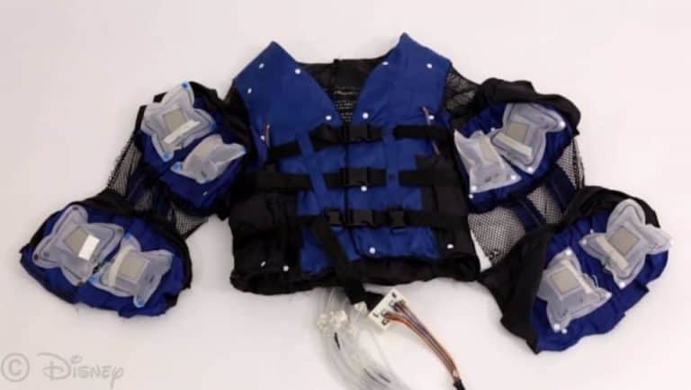 قرر قسم الأبحاث في ديزني التعامل مع هذا النقص، ولهذا أطلق سترة فورس، وهي مصنوعة من سترة نجاة تم تعديلها، ويعتمد النموذج الأولي على مجموعة من البالونات الهوائية المدمجة في داخله، والتي تنتفخ، وتتفرغ، وحتى تهتز، من أجل محاكاة الشعور باللمس للشخص الذي يرتدي السترة. وعند التحكم بهذا النظام عن طريق برنامج للواقع الافتراضي، يمكن أن يحاكي أشياء غريبة، مثل الشعور بأفعى تزحف عليك، أو أمور أقل غرابة، مثل التعرض لضربة بكرة ثلج. وباختصار، تقوم العملية على المطابقة ما بين الإحساس اللمسي على جسد مستخدم السترة، وما يراه في العالم الافتراضي. من الجدير بالذكر أن هذا الجهاز هو نتيجة مشروع بحثي، وبالتالي قد يكون من المستحيل العثور على هذه السترات على أمازون، كما أنه ليس المشروع الأول الذي يركز على إدماج الإحساس اللمسي في الواقع الافتراضي.
