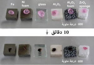 حيث أخذوا بتلات من الأزهار ووضعوها على مجموعة متنوعة من المواد، بما في ذلك الحديد، رغوة أوكسيد الألمنيوم، وعلى إسفنجة السيراميك الجديدة المصنوعة من ثنائي أوكسيد الزركونيوم. بعد مضي 10 دقائق وهي تتوضع فوق عناصر تم تسخين كل منها إلى 400 درجة مئوية، كانت البتلات التي تعلو كافة المواد المختلفة عن إسفنجة السيراميك قد احترقت تماماً. أما البتلة التي لا يفصلها عن الصفيحة الساخنة سوى 7 ملليمترات من المادة، فبعد مضي 10 دقائق من توضعها على قطعة الإسفنج، لم يصبها شيء سوى أنها ذبلت قليلاً.