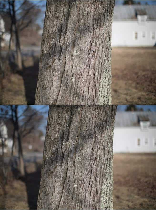 التقطت الصورة العليا برقم فتحة f/1.4، على حين التقطت الصورة السفلى برقم فتحة f/1.8. لا يوجد فرق واضح.