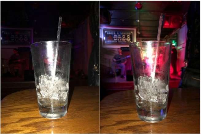 في اليسار نرى صورة بهاتف آيفون 7 بلس مع تشغيل الفلاش، وفي اليمين نرى آيفون 8 بلس. تحدث الإضاءة الإضافية في الخلفية فرقاً كبيراً، على الرغم من أنها ليس جيدة.
