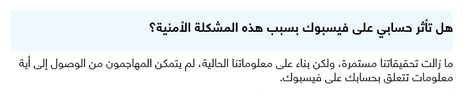 وإذا كنت ترغب في معرفة وضع حسابك بالنسبة لهذا الاختراق، يمكنك أن تنقر على هذه الصفحة وتنزل إلى الأسفل. كما أن فيسبوك بدأ بإطلاق التنبيهات للمستخدمين الذين تعرضوا للاختراق من أجل إعلامهم بالمعلومات التي تسربت.