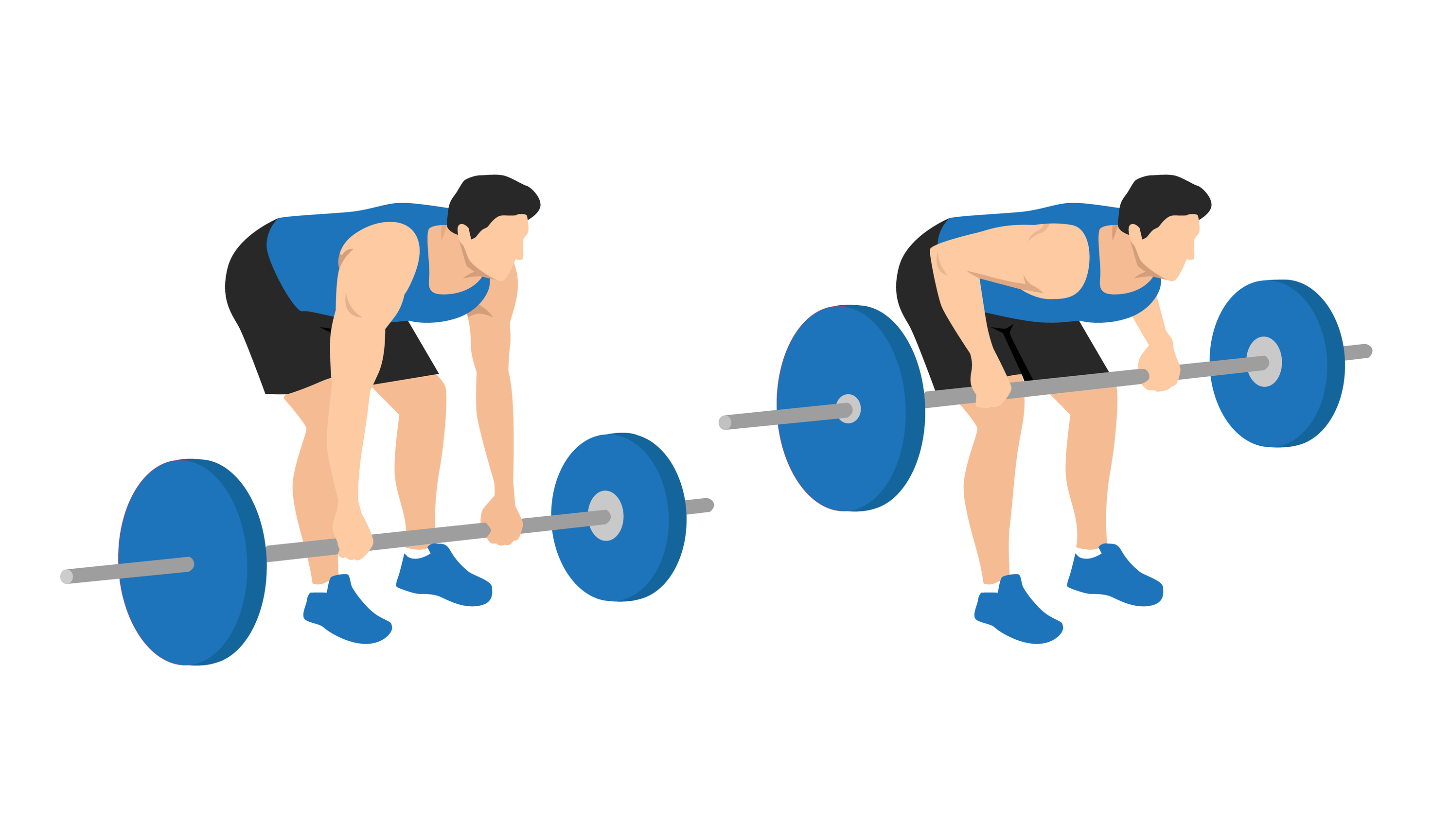 - عضلات الظهر والعضلة ذات الرأسين (الباي): وتُعرف بعضلات السحب، لأنها تستهدف العضلات التي تُستخدم للسحب نحو الجسم؛ مثل تمرين الانحناء لرفع الأثقال (Barbell Row).