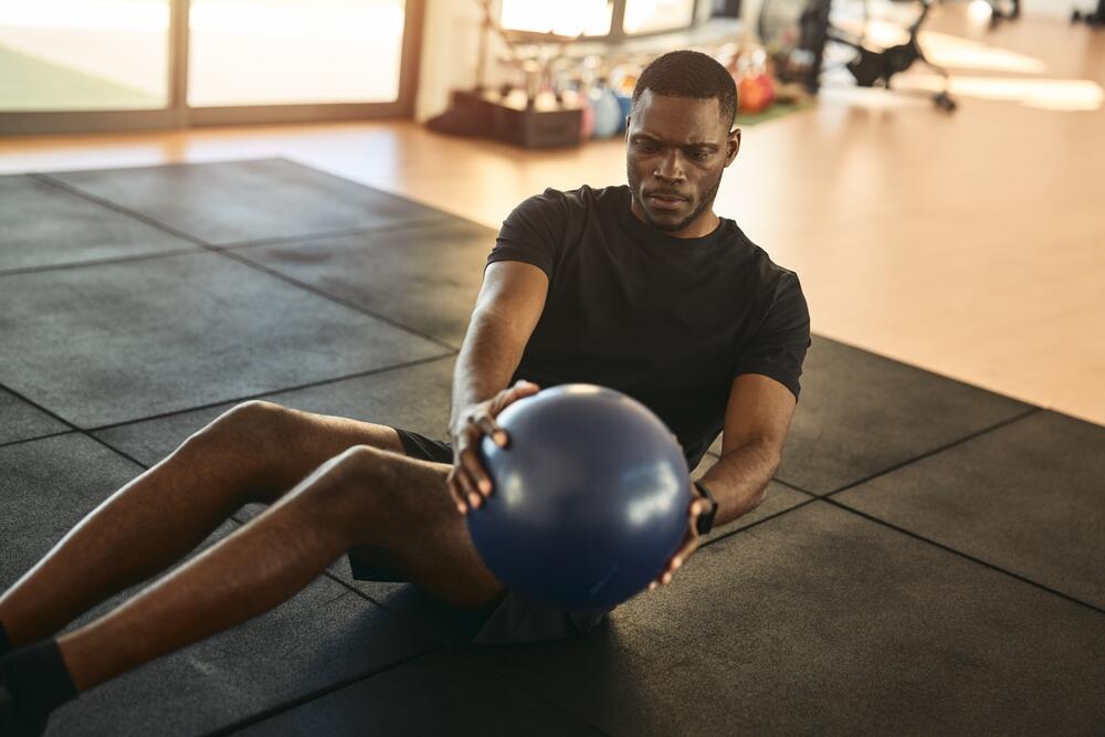 - تمرين الالتفاف الروسي: اجلس بزاوية 45 درجة من الأرض، بحيث يشكل الجذع مع الفخذين شكل حرف V. مع إراحة القدمين على الأرض أو رفعهما. اشبك يديك أمامك ثم ابدأ بتدوير الجسم نحو اليمين ثم اليسار. يستهدف هذا التمرين عضلات البطن الجانبية، ما يسهم في تعزيز قوة البطن الجانبية وزيادة ثبات الجذع.