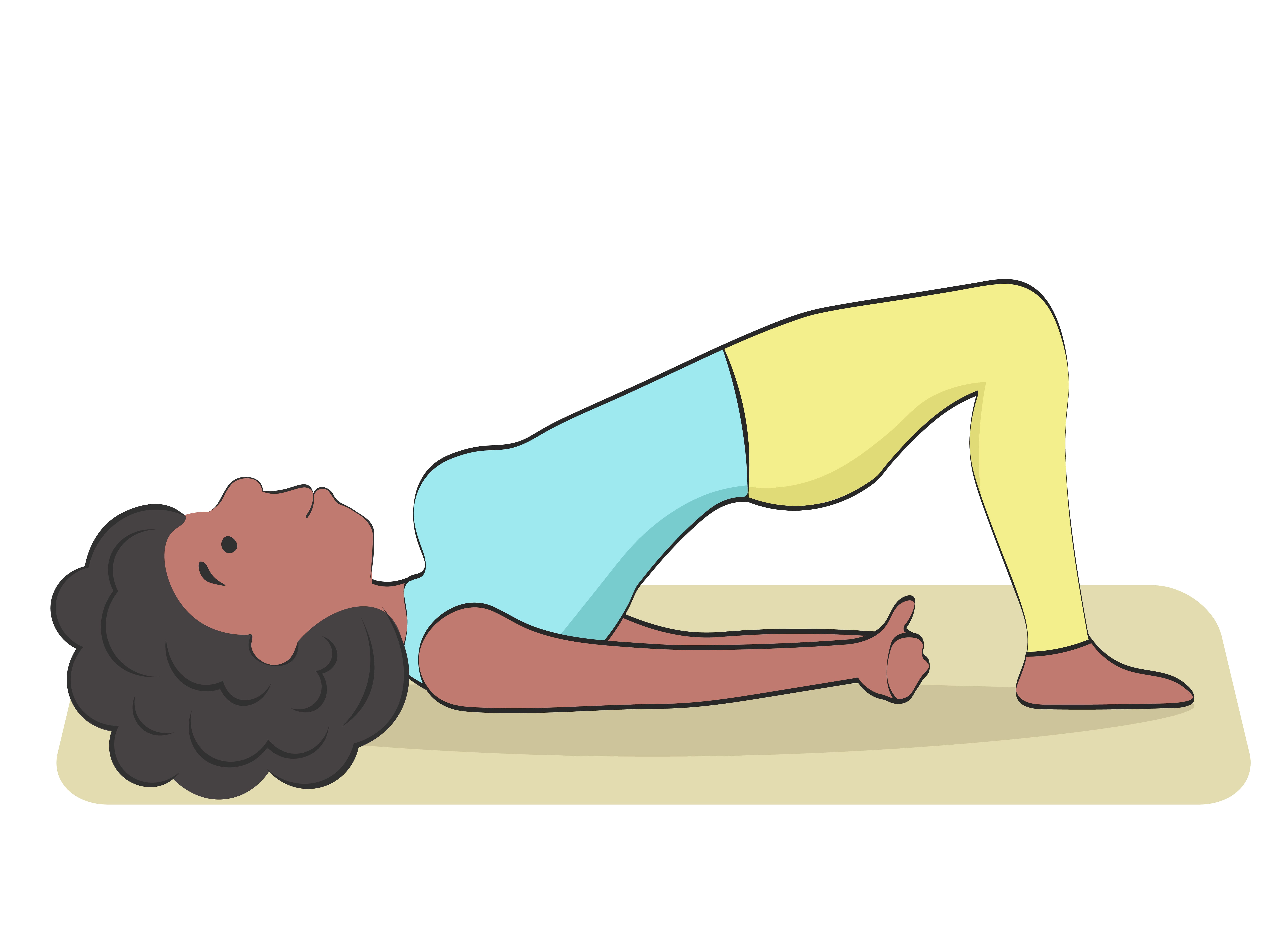- تمرين الجسر العادي: استلق على ظهرك واثنِ ركبتيك وضع قدميك على الأرض. اضغط على الأرض بقدميك وارفع الوركين حتى يصبحا بمحاذاة الجذع، ثم اثبت ثلاث ثوانٍ قبل العودة إلى وضع البداية. يستهدف هذا التمرين تقوية عضلات الأرداف والوركين والفخذين والبطن. يمكنك تكراره 10- 15 مرة.