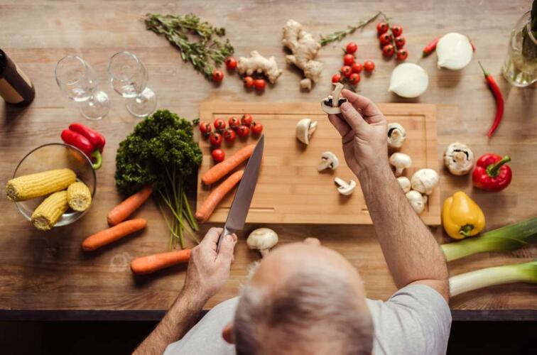يشمل اتباع النظام الغذائي الصحي بعد سن الخمسين الحد من الأطعمة الفائقة المعالجة، والتي تكون غنية بالسعرات الحرارية والملح والدهون المشبعة والسكر وقليلة الألياف والفيتامينات والمعادن، ومن المهم تناول الطعام المطهو في المنزل معظم أيام الأسبوع للتحكم في أسلوب الطهي ومكونات الوصفة، مع التقليل من الملح واستخدام بدائله، وتناول الأطعمة المنخفضة الصوديوم.
