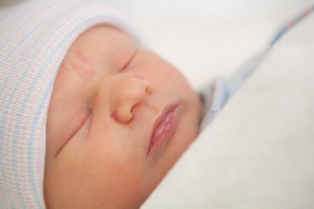 - البقع الوردية الصغيرة: أو بقع السلمون أو لدغات اللقلق، وهي عبارة عن أوعية دموية صغيرة مرئية من خلال الجلد. تظهر عادة على الجبهة أو الجفون أو الشفة العليا وبين الحاجبين والجزء الخلفي من الرقبة، وتتلاشى بمرور الوقت.