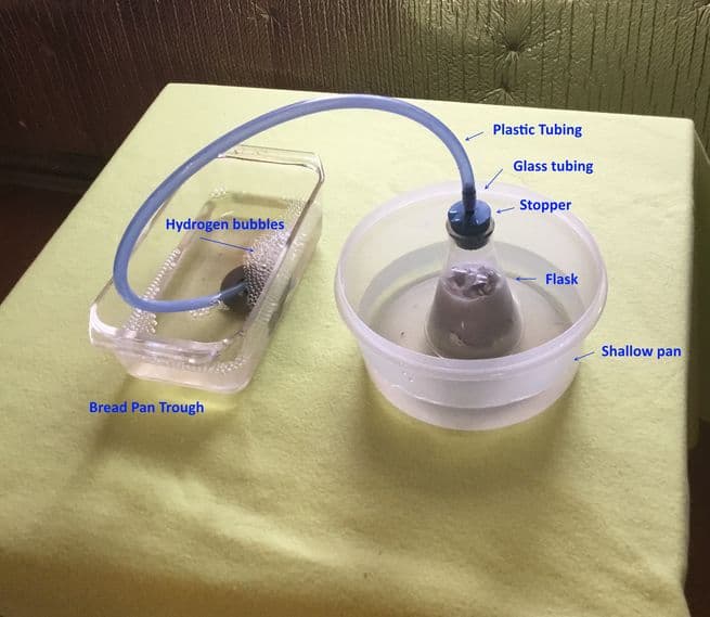 تُظهر هذه الصورة طريقة المؤلف لصنع فقاعات الهيدروجين.