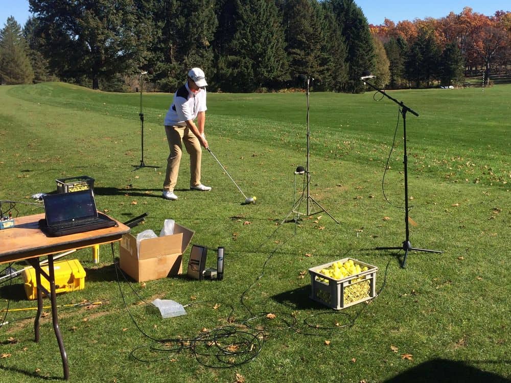 يوجد عدد مذهل من العوامل التي يمكن تسجيلها فيما يتعلق بضربة الغولف، ولكن يوجد بضعة عناصر هامة بالنسبة للصوتيات: التردد، المطال (الذي يشار إليه غالباً بشدة الصوت)، والامتداد الزمني. وتعتبر العلاقة بين هذه العناصر جوهرية للحصول على صوت جيد، حتى لو كان الأداء الحقيقي سيئاً، فقد تتراوح أصوات ضربات الكرة ما بين رنة ممتعة وقرقعة مؤلمة.