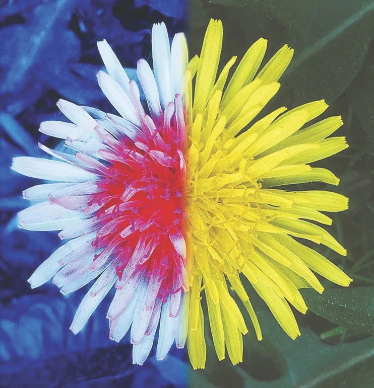يعني هذا الاختلاف في الإدراك أن الحشرات تستطيع توجيه نفسها بصرياً في حدائق منازلنا بطرق لا يمكننا تخيّلها. تؤدي الزهور ذات البتلات التي تتفاعل مع الأشعة فوق البنفسجية وظيفة أضواء المدرجات؛ إذ يستخدمها النحل للتوجيه علاوة على أنها تجذب الحشرات بسبب تباينها الكبير مع محيطها. خذ زهور الطرخشقون الأصفر مثالاً. تبدو هذه الزهور صفراء وصلبة ولا تحتوي على الأنماط بالنسبة للبشر، لكنها هدف متعدد الألوان ونابض بالحياة للأحياء الأخرى التي تعتمد على النبات وتحافظ أيضاً على بقائه.