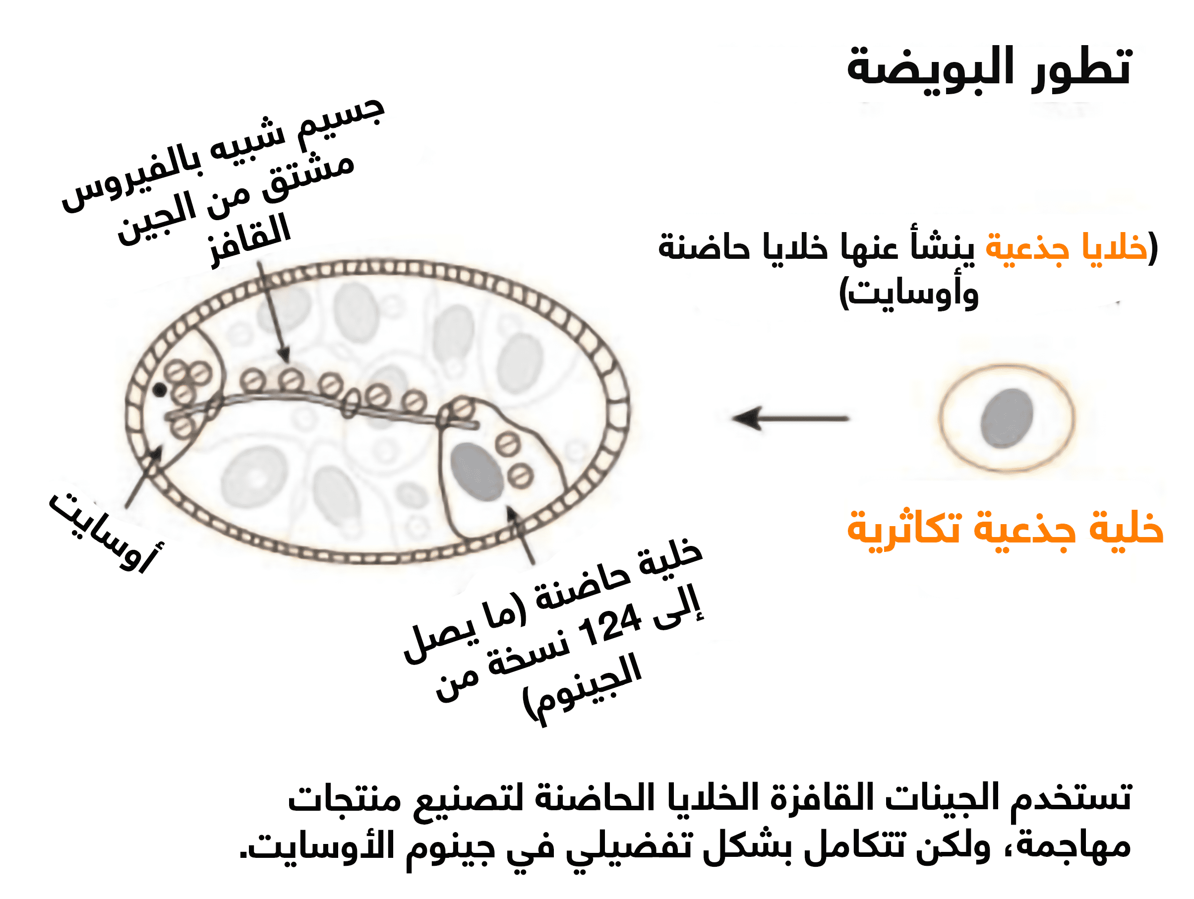 تستخدم الجينات القافزة الخلايا الحاضنة لتصنيع منتجات مهاجمة، ولكن تتكامل بشكل تفضيلي في جينوم الأوسايت.