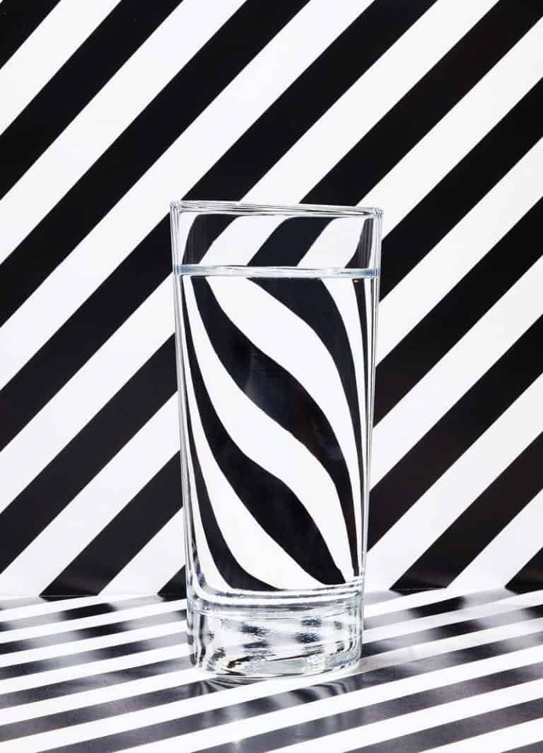 هل تساءلتم يوماً لماذا تبدو الخطوط البيضاء والسوداء المتوازية على الورقة منحنية ومتجهة باتجاه مختلف عند النظر إليها من خلال الكأس الممتلئة؟