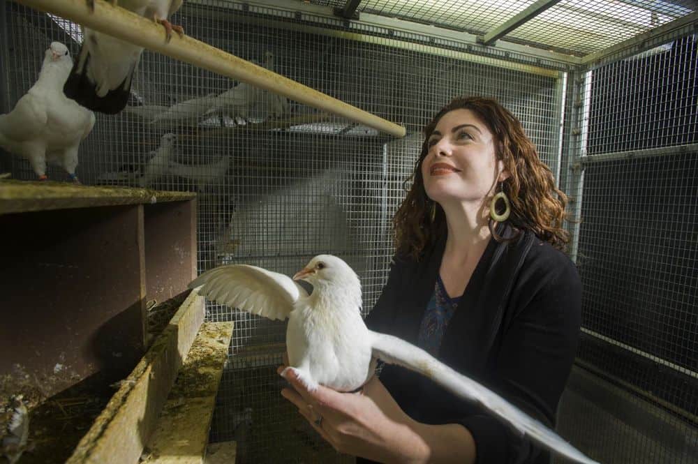 تقوم عالمة البيولوجيا في جامعة كاليفورنيا في ديفيس ريبيكا كاليسي بدراسة الاختلافات بين ذكور وإناث الحمام (الحمام الجبلي).