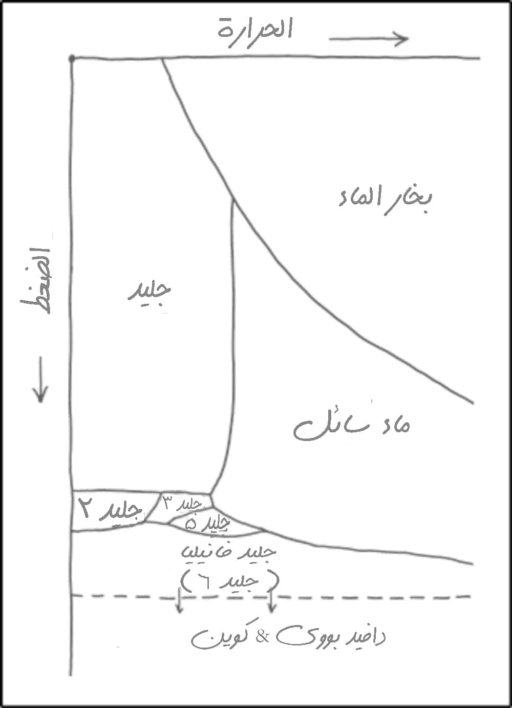 قام العلماء بتمثيل ذلك باستخدام مخطط الحالة، وهو عبارة عن خريطةٍ تمثل حالات المادة ضمن الشروط المختلفة (حالات المادة الأساسية هي: سائلة، غازية، صلبة).