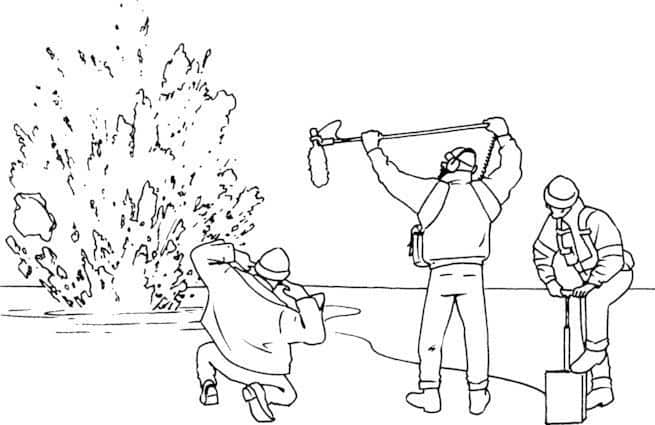 ولما كانت المتفجرات مصدر عظيم من مصادر الصوت، حفرنا حفرة بعمق 20 متراً داخل الجليد باستخدام حفارة الماء الساخن، ثم وضعنا مقدار نصف كيلوجرام من المتفجرات من نوع "بانتكس إتش" وثبتناها جيداً بالثلج، وصففنا على السطح مكبرات صوت ثم كان الانفجار... بوووم!