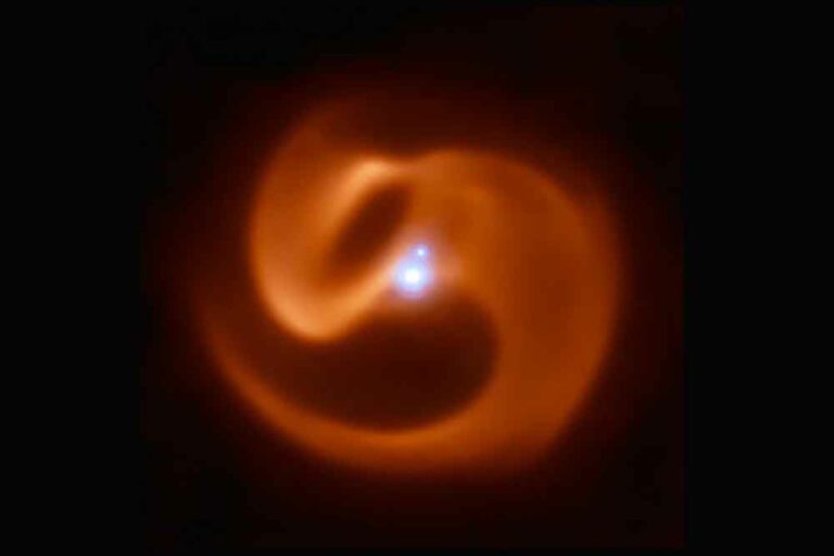 كيف يمكن أن يحدث ذلك؟ يشرح رينزو: «عندما يتحرك شيء بسرعة كبيرة، فسيكون هناك أثر للقوة النابذة على الجسم الذي يدور»، هذه القوة تغير شكل النجم، جاعلة إياه مسطحاً أكثر عند منطقة الأقطاب وأكثر تدويراً في وسطه، مما يجعل الرياح التي تأتي من الأقطاب أسرع من تلك التي تدفع الغبار خارجةً من المنطقة الاستوائية من النجم. وبما أن النجمين يرقصان في حركة دائرية، فالغبار لا يتوسع بشكل مستقيم، إنما يلتف بشكل حلزوني. يقول بيتر توتهل -مؤلف مشارك للورقة الجديدة- في منشور حول الاكتشاف الجديد: «أثناء دوران النجمين حول بعضهما، يلتف الغبار ويُنحَت ليشكل ذيلاً كبيراً سخامياً ومشعاً».