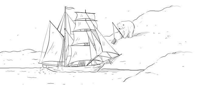 في البداية كانت رؤية دب قطبي عن قرب أمراً مثيراً، ولكن سرعان ما أدركنا أنه لو أراد ذلك الدب أن يصل إلى قاربنا ويصعد إليه لفعل، وهي فكرة مخيفة. فقمنا بإضاءة شعلات الإنارة، وأخفناه حتى ابتعد. لكن بعد عدة ساعات ظهر مرة أخرى فاستخدمنا شعلات الإنارة مجدداً. وفي اليوم التالي كان الدب جالساً على اليابسة يراقبنا، كأنه كلب ينتظر أن تُلقى إليه بقايا الطعام، وحينها قررنا الابتعاد من هناك، فأنت حتماً لا تريد أن تكون الوجهة المفضلة لغداء ذلك الدب إن قرصه الجوع مجدداً.