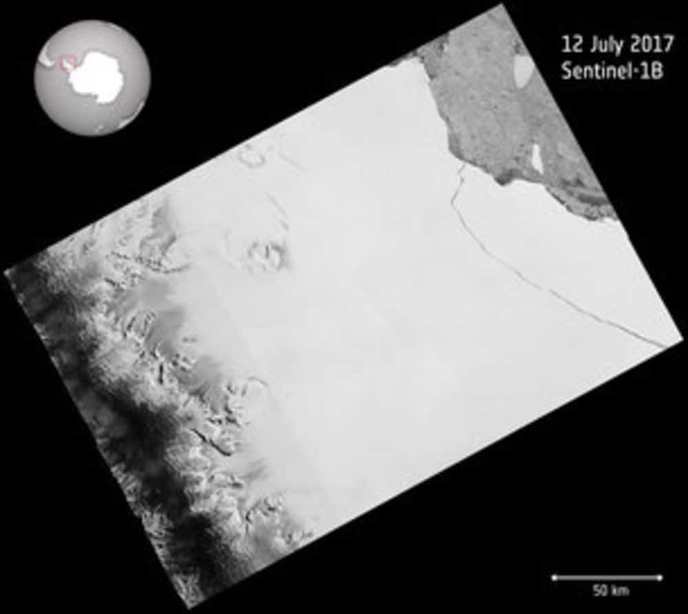 كان حجم الكتلة المنفصلة من لارسين سي، والتي تعتبر من أضخم الكتل الجليدية المنفصلة التي تم توثيقها، كافياً لجذب الكثير من الانتباه. وذلك لدرجة أنه لم ينتبه الكثيرون إلى أمرٍ رائعٍ، وهو أننا تمكنا من تتبع حركتها بشكلٍ آني تقريباً. انفصلت لارسين سي في ليلة 11-12 يوليو، وبحلول الصباح، كان الخبر قد انتشر على مستوى العالم، وذلك بفضل بعض التقنيات الرائعة لالتقاط الصور بالأقمار الصناعية.