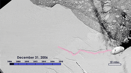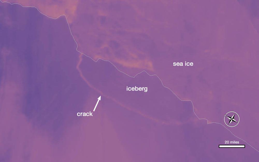 يقول لوكمان: "إن الصدع الذي تسبب بانفصال هذا الجبل الجليدي ليس سوى واحدٍ من عدة صدوعٍ بدأت تشق طريقها في الصفيحة الجليدية من الجنوب. هناك حوالي 12 صدعاً، وعادة ما تتوقف بسبب منطقة من الجليد أكثر رقة مما يحيط بها. وهو ما منع بقية الصدوع من متابعة طريقها في الصفيحة الجليدية إلى حيث يمكن أن تتسبب بحدوث انفصال".