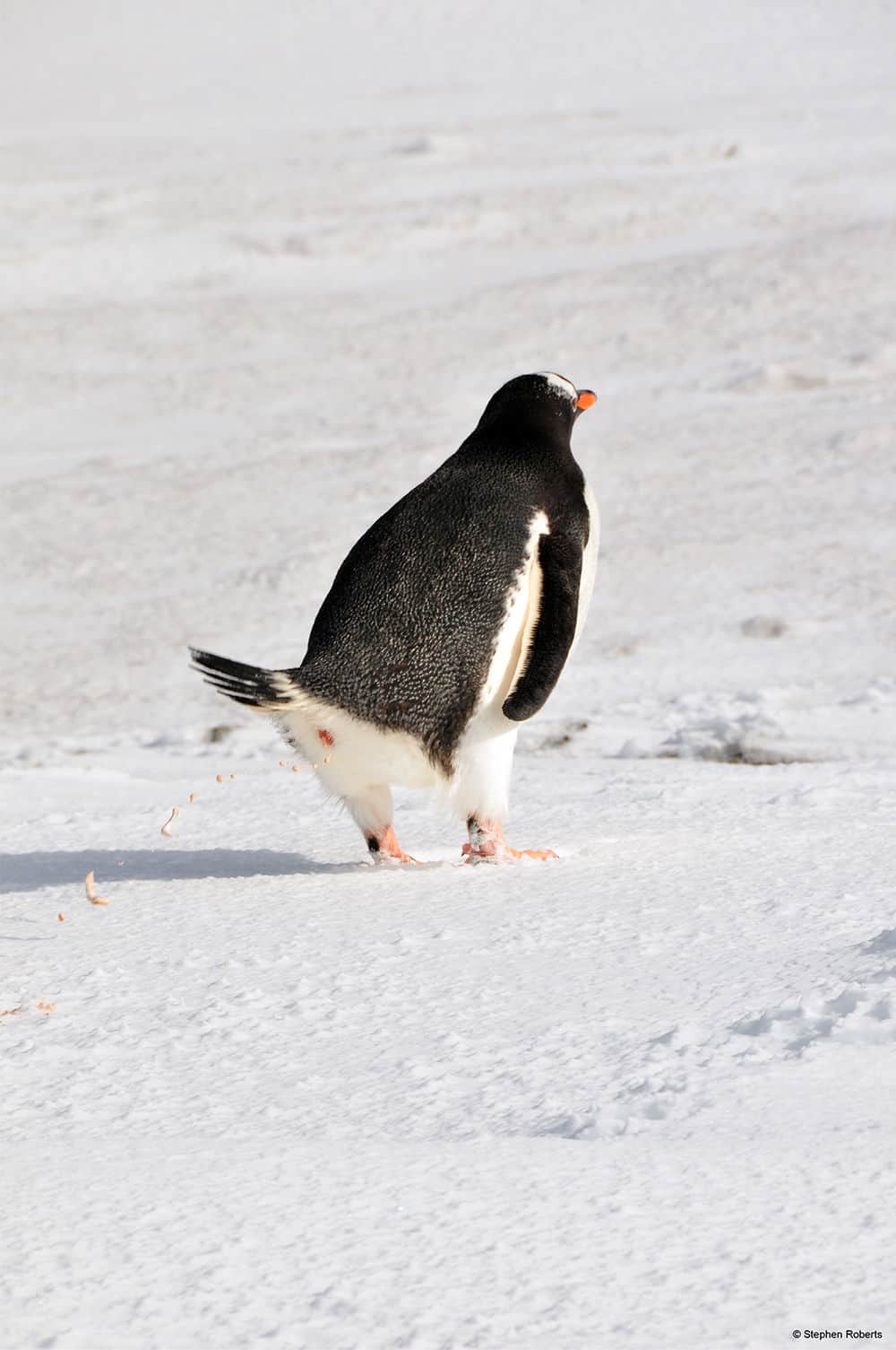 بطريق جينتو يتبرز على الثلح قرب منطقة كوف بوتر بجزيرة الملك جورج.