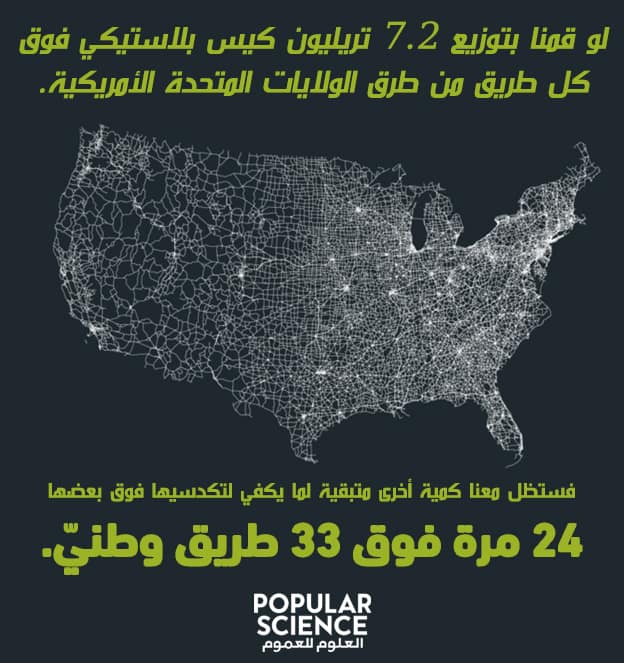 يعد الرقم المهول لهذا الإحصاء رقماً بالغ الضخامة لدرجة يصعب على الإنسان إدراكه وفهمه بعمق حقاً. وهنا يأتي دور "ضرب الأمثال" و"التشبيه" لكي يستوعب الإنسان مثل هذه الأرقام الهائلة، ففي مقال إحصائي نشره موقع "ذا كونفرسيشن"، أشارت الكاتبة إلى أنه إن كان كيس البقالة بإمكانه استيعاب 31 قارورة بلاستيكية (وقد جربت الكاتبة ذلك بالفعل)، فإن كمية النفايات البلاستيكية غير المعاد تدويرها يمكنه ملء حوالي 7.2 تريليون كيس بقالة. لكن حتى مع هذا التمثيل، لا يزال إدراك هذه الأرقام صعب التصور. ذلك أن هذا العدد من الأكياس لم يسبق للمرء رؤيته أو حتى التفكير فيه من قبل، فمتى كانت آخر مرة لك تصورت فيها تريليون كيس بقالة؟ لذلك قمنا هنا بعرض هذه الأرقام بشكل مختلف قليلاً على أمل أن نتمكن بنجاح من أن ننقل لك "الضخامة" الحقيقية الفادحة التي تسم بهذا هذه المشكلة.