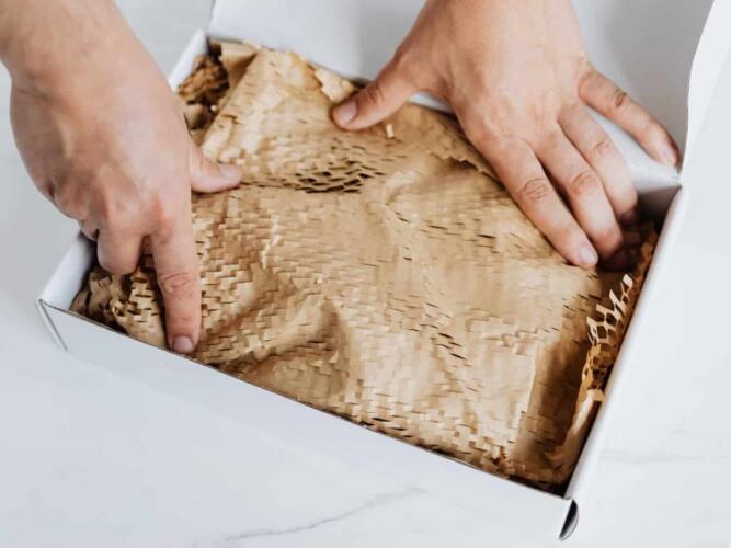 على سبيل المثال، ابدأ بإجراء تغييرات بسيطة ومستهدفة في مجالات مثل التعبئة والتغليف. قلل من المواد التي تستخدم مرة واحدة أو تخلص منها، وقم بتكييف حجم الصناديق من أجل استخدام أقل قدر ممكن من مواد الحشو والملحقات اللازمة لتجهيز كل طلب. وعند اختيار الحشو والأدوات الأخرى مثل الشريط اللاصق، ابحث عن بدائل قابلة للتحلل، والأفضل من ذلك، إعادة استخدام ما لديك بالفعل. يمكنك مثلاً استخدام الصحف الممزقة كمادة حشو تحمي منتجاتك أثناء نقلها، وإذا كان لديك بعض مواد الحشو القديمة، يمكنك إعادة استخدامها، ومن المؤكد أنها بديلٌ رخيص أيضاً.