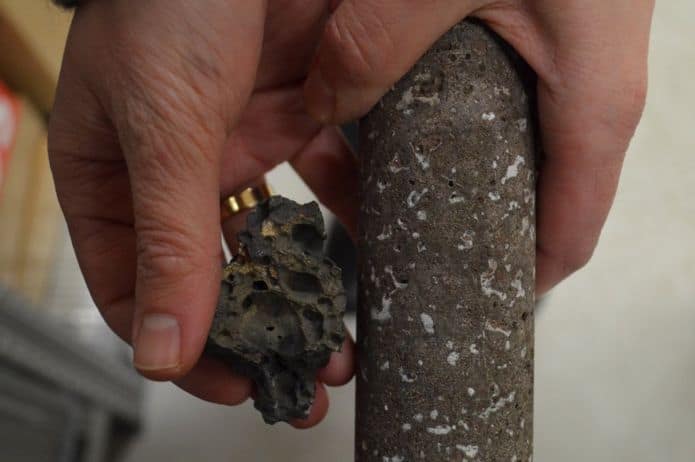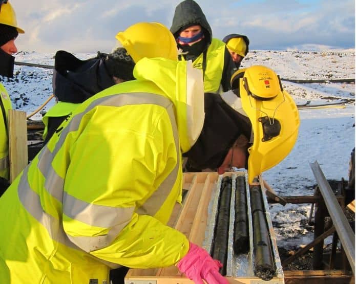 من جهتها ساندرا سنيبيورنسدوتير الجيولوجية التي تعمل لصالح كارب فيكس، لديها دليل في حوزتها: وهي عينة أسطوانية تم استخراجها من الموقع، تظهر حجر البازلت وهو مرصع بعدد من البلورات الطباشيرية.