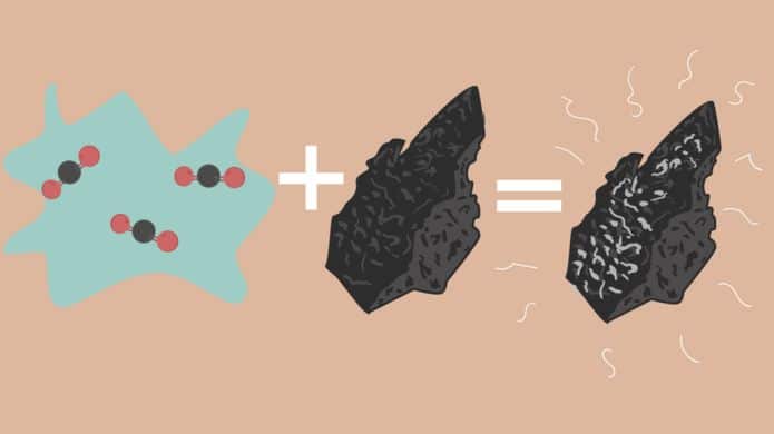 وتضيف: "ما يحدث هنا بشكل أساسي يشبه العملية التي تجري في مطبخك، فعندما تعد لنفسك بعض الماء الفوار، تضيف مادة فوارة إلى الماء".