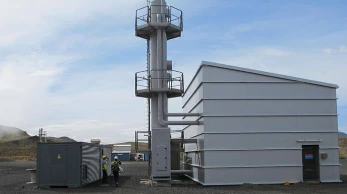 تبدأ العملية باحتجاز ثنائي أوكسيد الكربون الذي ينبعث كناتج ثانوي عن البخار، لتتم إذابته بعد ذلك في كميات كبيرة من الماء.