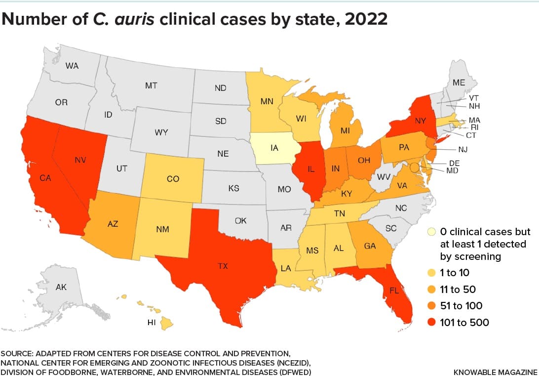 يقول المتخصص في علم الفطريات الطبي في معهد الدراسات العليا للتعليم الطبي والأبحاث الطبية في مدينة شانديغار الهندية، أرونالوكيه تشاكرابارتي: "تسبب هذا الفطر بكارثة حقيقية في الهند". وفقاً لتشاكرابارتي، كان فطر داء البقع البيضاء في أسفل قائمة أنواع المبيضات التي تهدد المرضى عندما أُبلغ عنه أول مرة في الهند منذ أكثر من عقد من الزمن، ولكنه أصبح الآن السبب الرئيسي لعدوى المبيضات في البلاد. ارتفعت الحالات في الولايات المتحدة بمعدّل عالٍ، من 63 حالة بين عامي 2013 و2016 إلى أكثر من 2,300 حالة عام 2022.