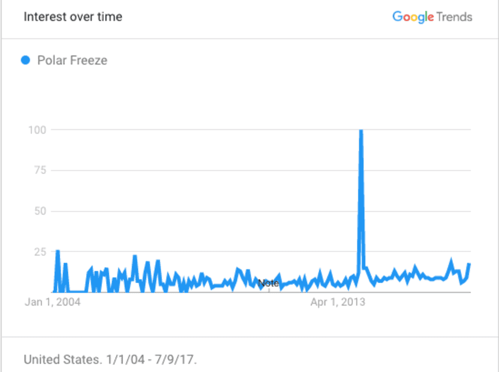 تجمد نهر هودسون في مدينة نيويورك عام 2015، وهو أمر نادر الحدوث. وقد أظهرت السجلات أن نهر هودسون تجمد قبل بداية القرن الواحد والعشرين في أعوام 1720، 1780، 1821، وهي الفترة التي صادفت ما يسمى بالعصر الجليدي الصغير، عندما كان نصف الكرة الشمالي من الأرض أكثر برودة إجمالاً. ولكن ومنذ بداية هذا القرن، فإن نهر هودسون قد تجمد مرتين وليس مرة واحدة: في عامي 2003 و2015. بينما سجلت إدارة الغلاف والجوي والمحيطات شتاء 2013-2014 في مناطق الوسط الغربي الأميركي، كواحد من أكثر الشتاءات برودة في المنطقة. وبحسب إحصائيات جوجل فإن مصطلحَي "التجمد القطبي" و"تجمد القطب الشمالي" قد دخلا القاموس الشعبي.
