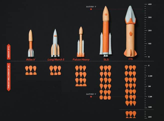 في حال تم بناؤه، سيكون أضخم صاروخ شهده العالم على الإطلاق، قادر على حمل 100 مستوطن إلى الكوكب الأحمر. قد تنطلق هذه المركبة الاستيطانية الهائلة في 2024، أو هذا ما تأمل به سبيس إكس، بشرط تأمين التمويل المادي أولاً.