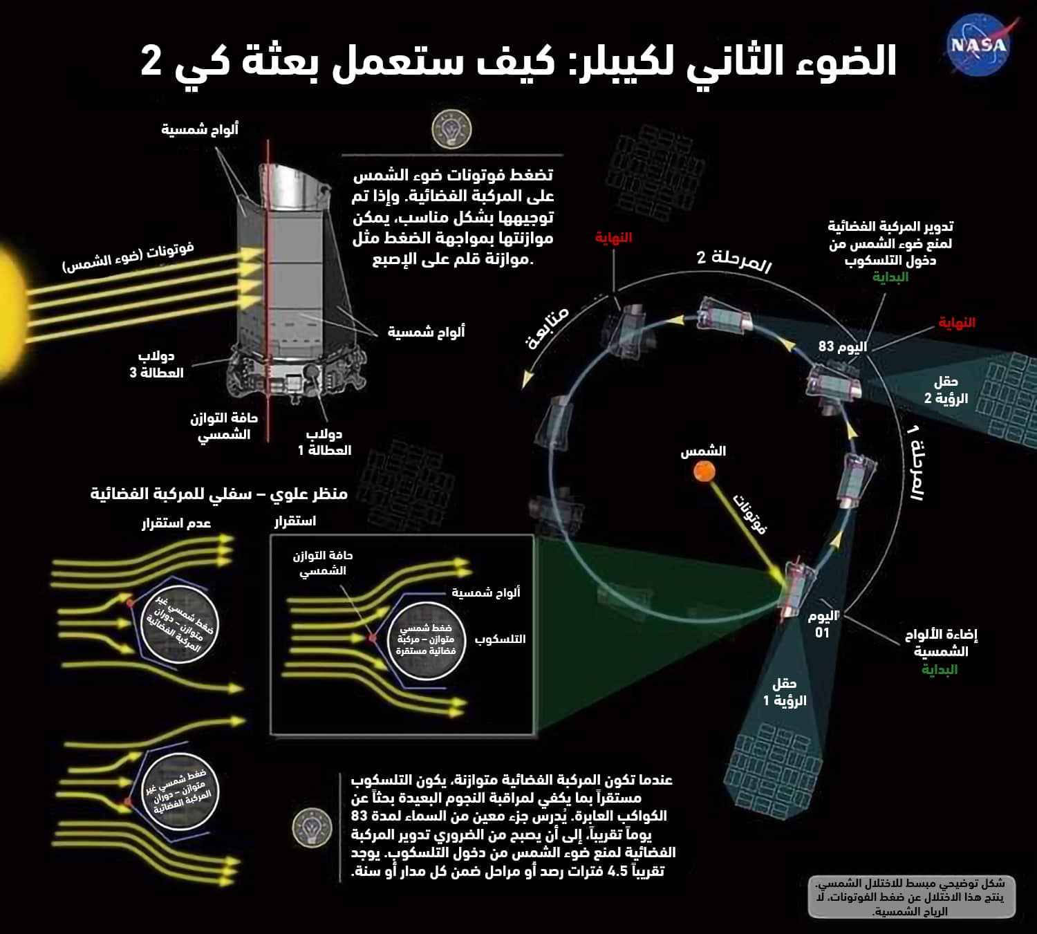 ولكن، حتى في هذه الحالة، تمكنت ناسا بشيء من الابتكار من استخدام ضوء الشمس المنعكس للمساعدة على توجيه المركبة الفضائية. أُعيد تسمية البعثة بالاسم كي 2، وتابعت العمل على اكتشاف المزيد من الكواكب لخمس سنوات إضافية. أما الآن، ومع نفاد الوقود، فقد انتهى صيد الكواكب، وستُترك المركبة الفضائية لتطوف بحرية في النظام الشمسي. تم استكمال الكتالوج النهائي للكواكب المرشحة من البعثة الأصلية في العام الماضي، وبدأ إنهاء آخر عمليات الرصد للبعثة كي2.