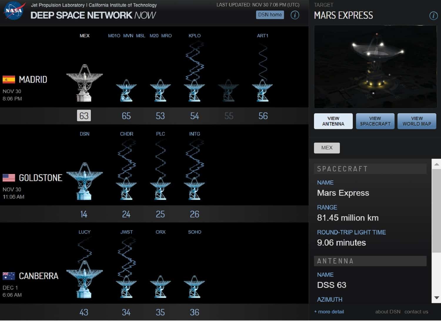 وفقاً لكبير مهندسي شبكة الفضاء العميق، جيف بيرنر (Jeff Berner)، لا تزال الشبكة تتعقب مركبتي فويجر التابعتين لوكالة ناسا، وهما مركبتان تم إطلاقهما في عام 1977 وأصبحتا خارج المجموعة الشمسية الآن. يقول بيرنر: "مع ابتعاد المركبات الفضائية عن الأرض، تنخفض كمية الطاقة التي نتلقاها منها"، ويضيف: "لذلك، تضعف الإشارات التي ترسلها هذه المركبات تدريجياً مع ابتعادها".