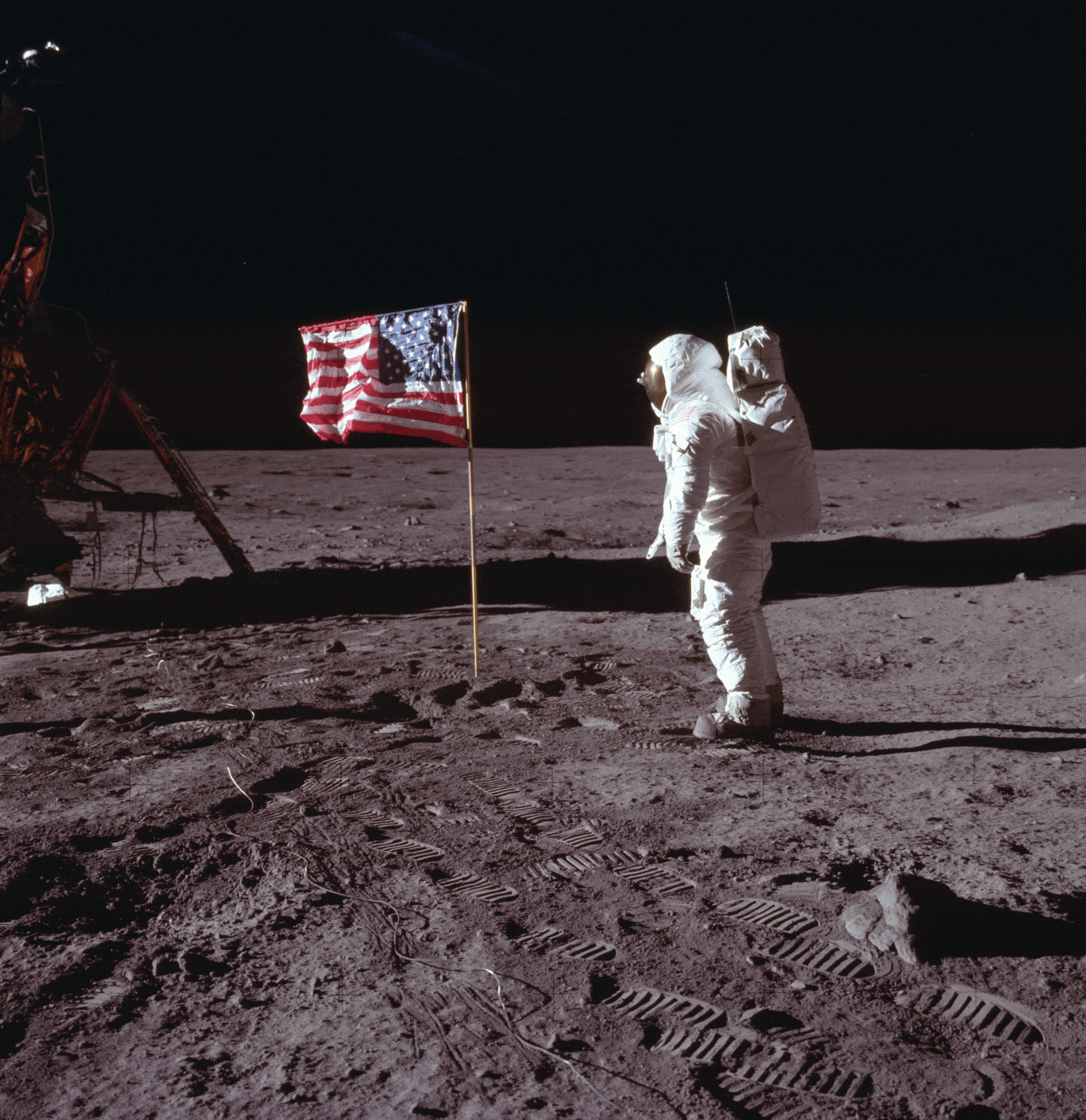 أما الحقيقة فهي أن العلم لم يكن يخفق، بل كان يهتز أثناء نصبه، وتسببت هذه الاهتزازات بتموج القماش، وهو أمر لا يمكن إنكاره. غير أنه لم يكن يخفق مع الريح. بل إن ناسا نشرت صورة جيف تبين سكون العلم بين صورتين مختلفتين.