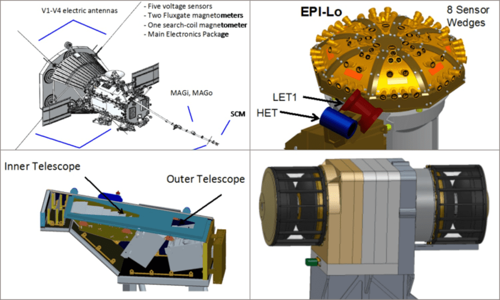 من ناحية أخرى، يعمل حساس فيلدز "FIELDS" على تحليل الحقول الكهربائية والمغناطيسية، والانبعاثات الراديوية، وأمواج الصدمة، وفي نفس الوقت يقوم بجمع المعلومات حول الدقائق الغبارية التي تعترض طريق المركبة، وذلك بالاعتماد على تقنية تم اكتشافها بالصدفة. وأخيراً، يقوم جهاز التصوير واسع الحقل للمسبار الشمسي، أو تلسكوب ويسبر "WISPR"، بالتقاط صور ثلاثية الأبعاد، شبيهة بصور الأشعة المقطعية (التصوير الطبقي المحوري) للرياح الشمسية والغلاف الجوي للشمس.