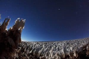 ونستطيع أن نستدل على ما يمكن أن يواجهه أي مسبار مستقبلي على سطح أوروبا من ظروف البرد والجفاف الشديدين على الأرض. وعلى سبيل المثال، توجد في صحراء أتاكاما في تشيلي مناطق مرتفعة، حيث يوجد ضوء ساطع ومستمر، وهواء بارد وجاف وساكن، وهو ما يؤدي إلى تعرض الجليد والثلج هناك إلى عملية التصعد أو التسامي، أي التحول إلى بخار فورياً بدون ذوبان. ويمكن لهذه العملية أن تترك خلفها تشكيلات ضخمة شبيهة بالنصال تسمى "بينيتينتيس" يصل ارتفاعها إلى حوالي 5 أمتار، تتجه جميعاً نحو شمس الظهيرة. ومن الجدير بالذكر أنها اكتسبت اسمها من كلمة "تائب" باللغة الإسبانية، حيث إن هذه التشكيلات تشبه جمهرة من المتعبدين الراكعين في وضعية التوبة.