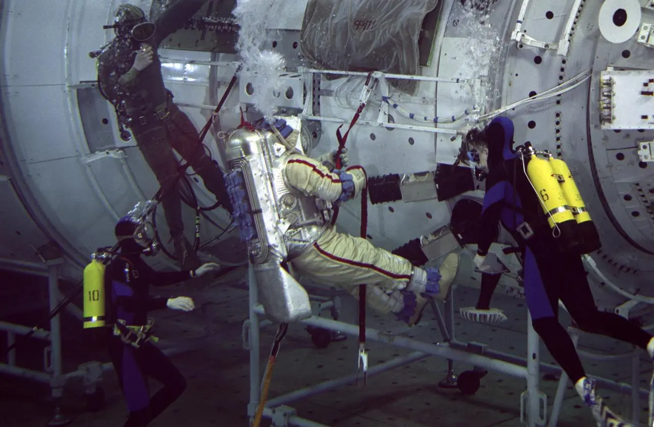 في الواقع، يتعين على رواد الفضاء أن يقضوا الوقت تحت الماء قبل أن يتمكنوا من ركوب مكوك فضائي للخروج من الغلاف الجوي للأرض. حتى أن هناك مركز تدريب مخصص لذلك، وهو مختبر الطفو المحايد في مدينة هيوستن الأميركية، الذي أنشأته وكالة ناسا لتدريب رواد الفضاء على المشي في الفضاء. يحتوي المختبر على أكبر مسبح داخلي في العالم، بطول 61 متراً وعرض 31 متراً وعمق 12 متراً وسعة 23.4 مليون لتر، كما يحتوي على نسخ مطابقة من مكونات محطة الفضاء الدولية وهياكل أخرى من صنع الإنسان في الفضاء.