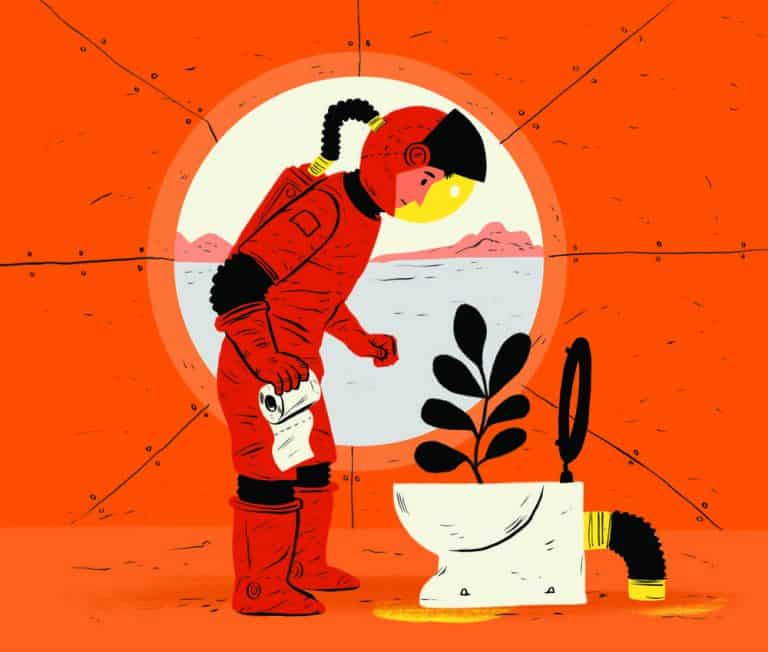 وإذا أغفلنا مؤقتاً اعتبارات الضوء والمياه، فإن النباتات تحتاج أيضاً للنِتروجين كي تنمو وتكبر. ويتميز البراز البشري باحتوائه على النِتروجين بالإضافة إلى البكتريا التي تُفككه إلى نترات، وهي المادة التي تُفضل النباتات استخدامها للنمو. ولكن بالإضافة إلى البكتريا المفيدة، يحتوي البراز أيضاً على العديد من أنواع البكتريا الضارة. فإذا قمنا بطرح البراز مباشرةً على النبات فقد تتكاثر البكتريا الضارة وتهدد سلامة الناس. ولتجنب ذلك لا بد أولاً من تحويل البراز إلى سماد للقضاء على البكتريا الضارة، وهي عملية تستغرق بضعة أشهر.